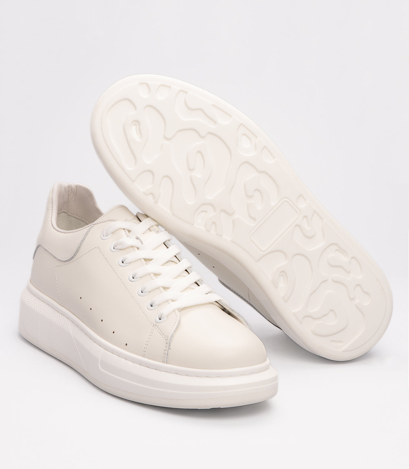 Erkek Kalın Taban Deri Casual Ayakkabı Beyaz