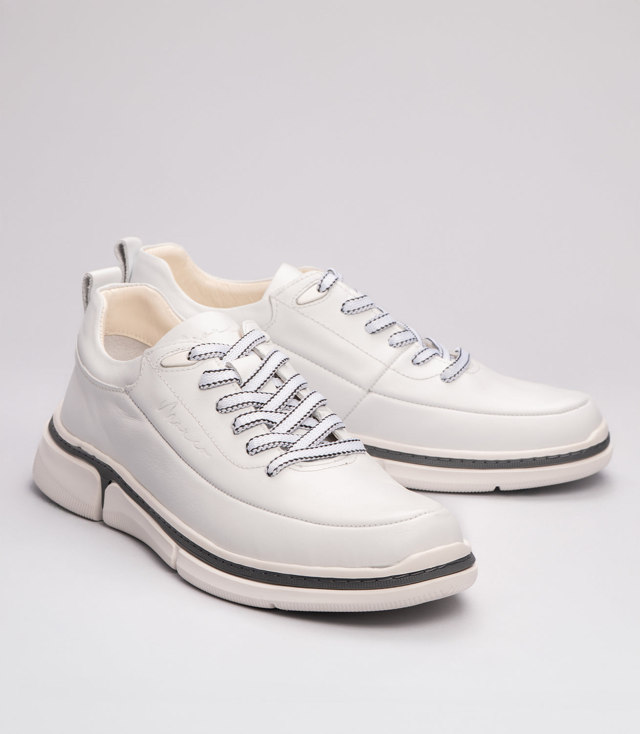 Erkek Hafif Taban Deri Sneaker Beyaz