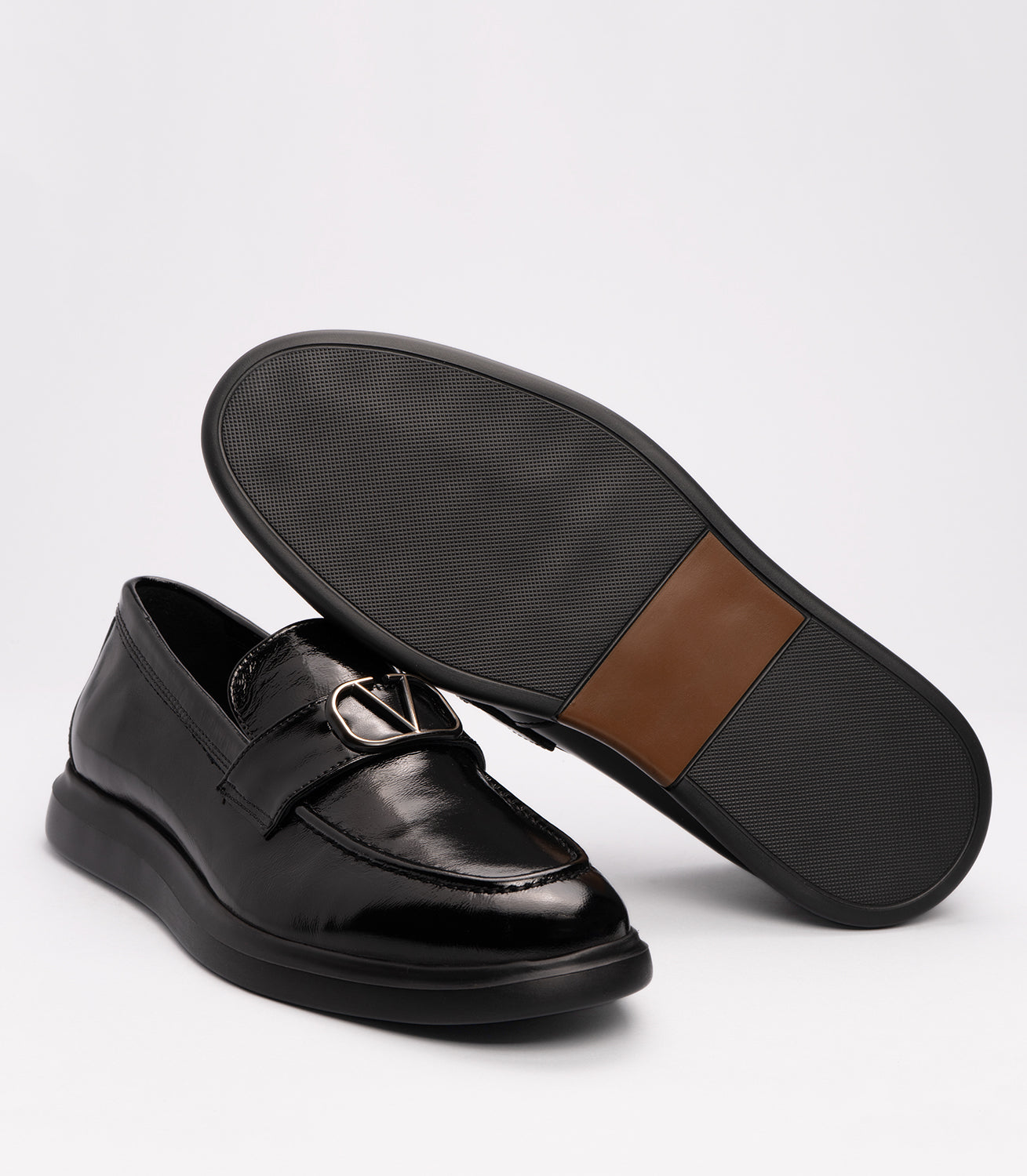 Erkek Tokalı Hafif Taban Loafer Siyah Rugan