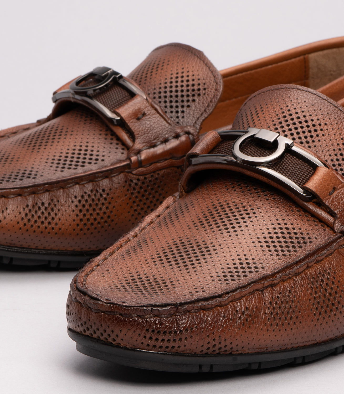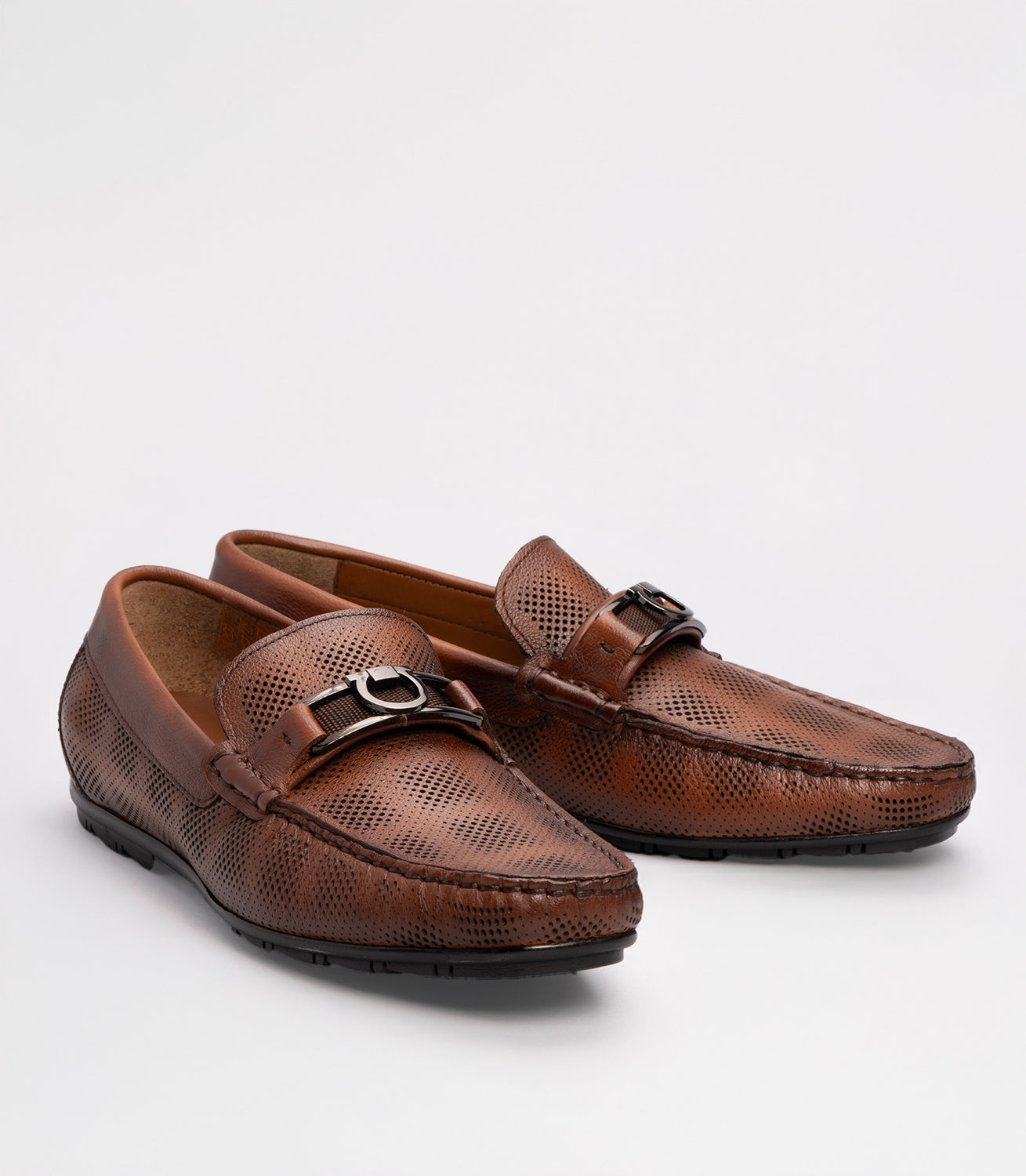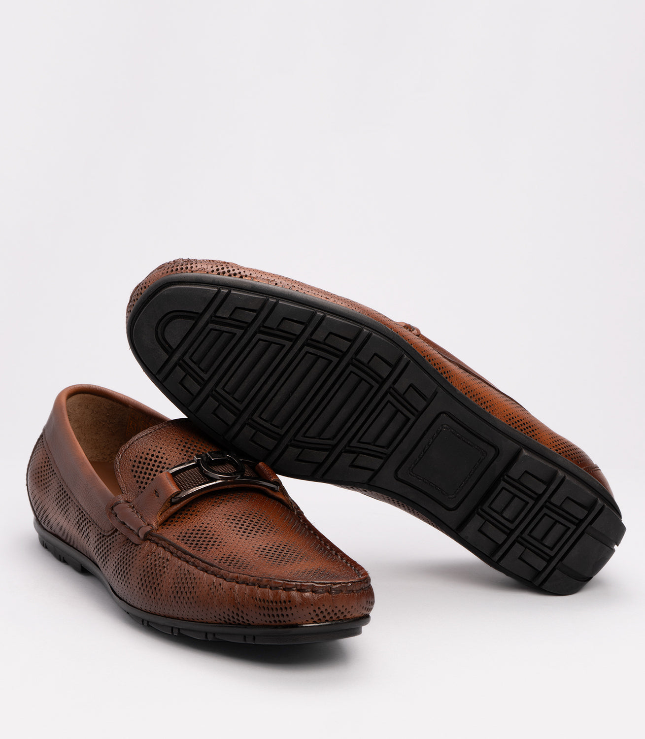 Erkek Tokalı Hakiki Deri Loafer Ayakkabı Kahverengi