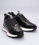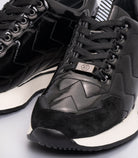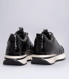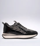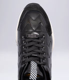 Erkek Bağcıklı Kalın Tabanlı Deri Sneaker Siyah Rugan