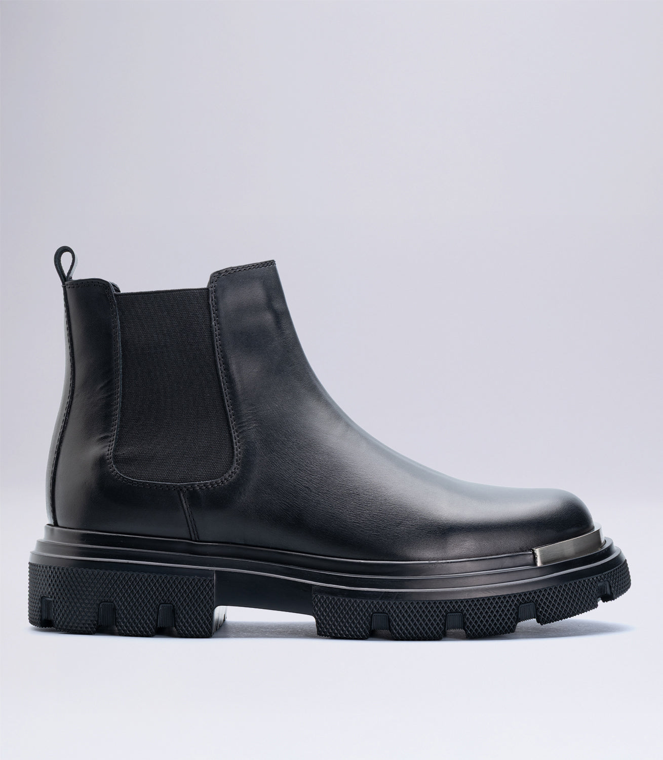 Erkek Kalın Tabanlı Deri Chelsea Bot Siyah