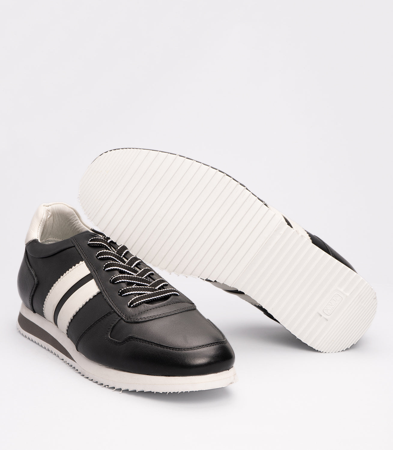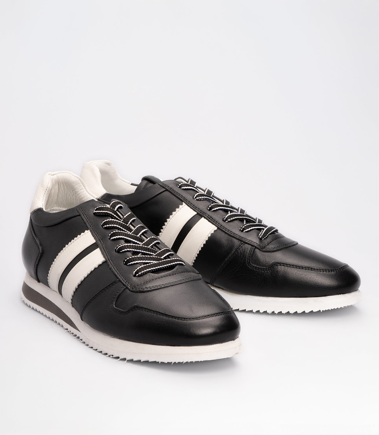 Erkek Deri Çizgi Detaylı Sneaker Siyah