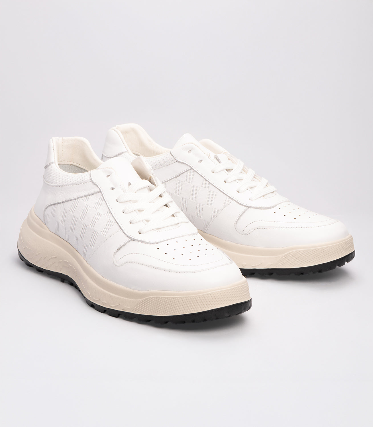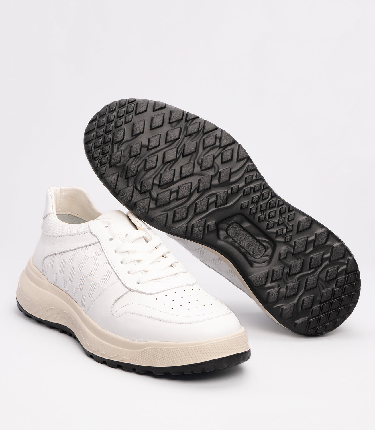 Erkek Desenli Deri Sneaker Ayakkabı Beyaz