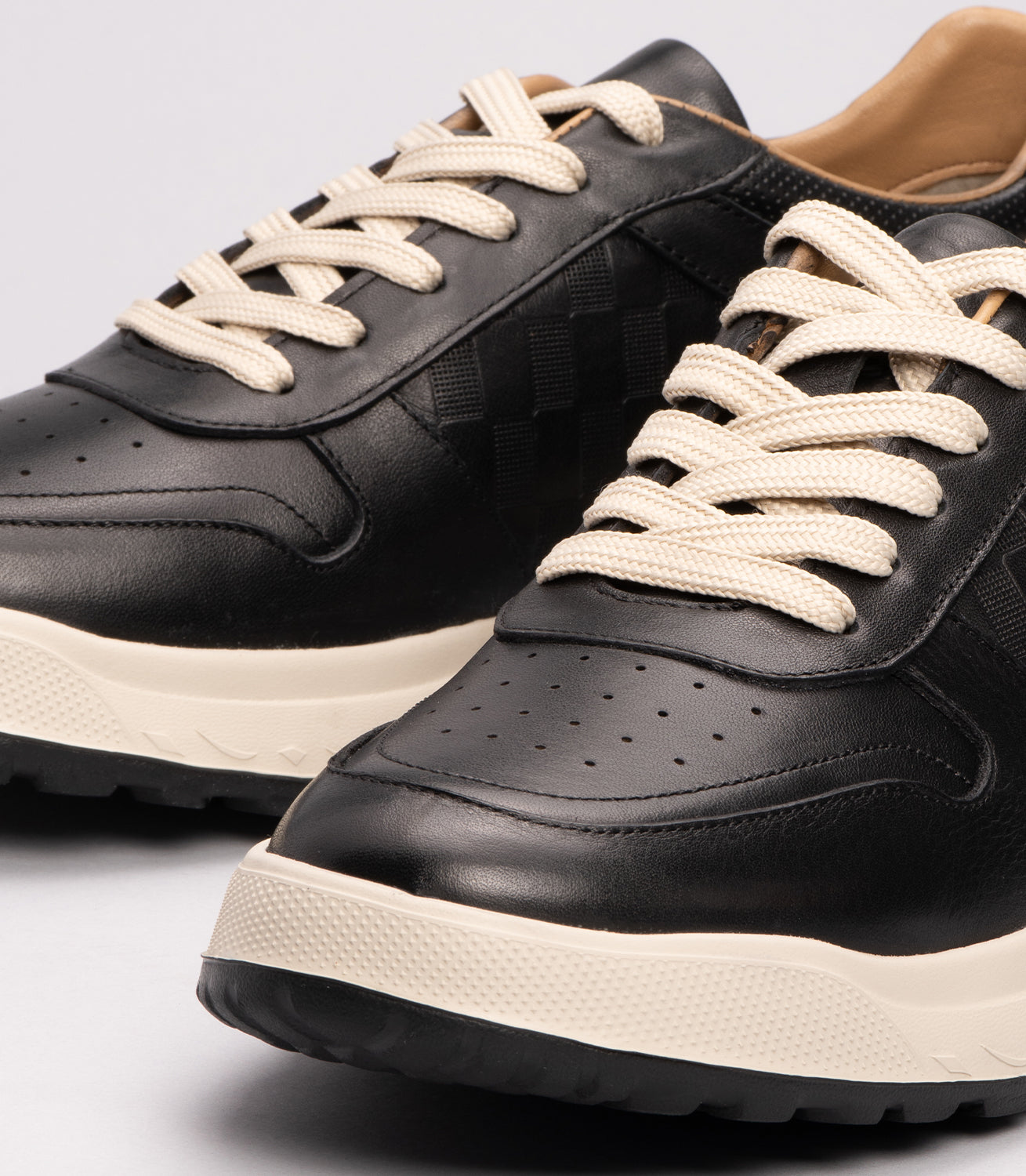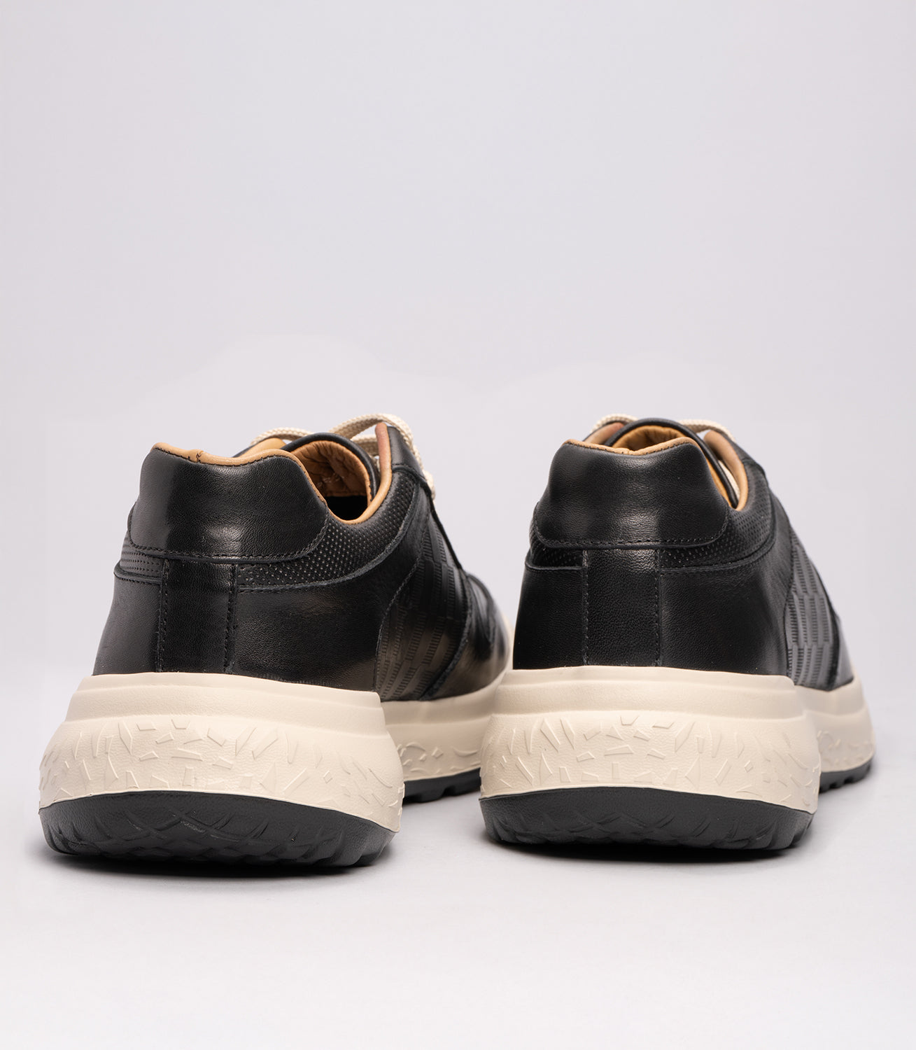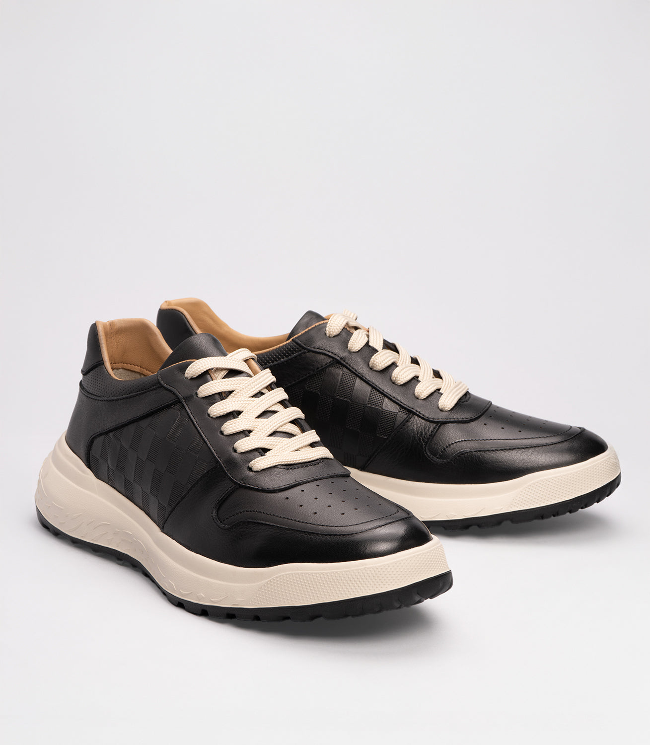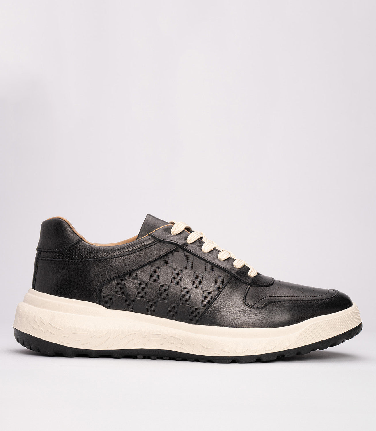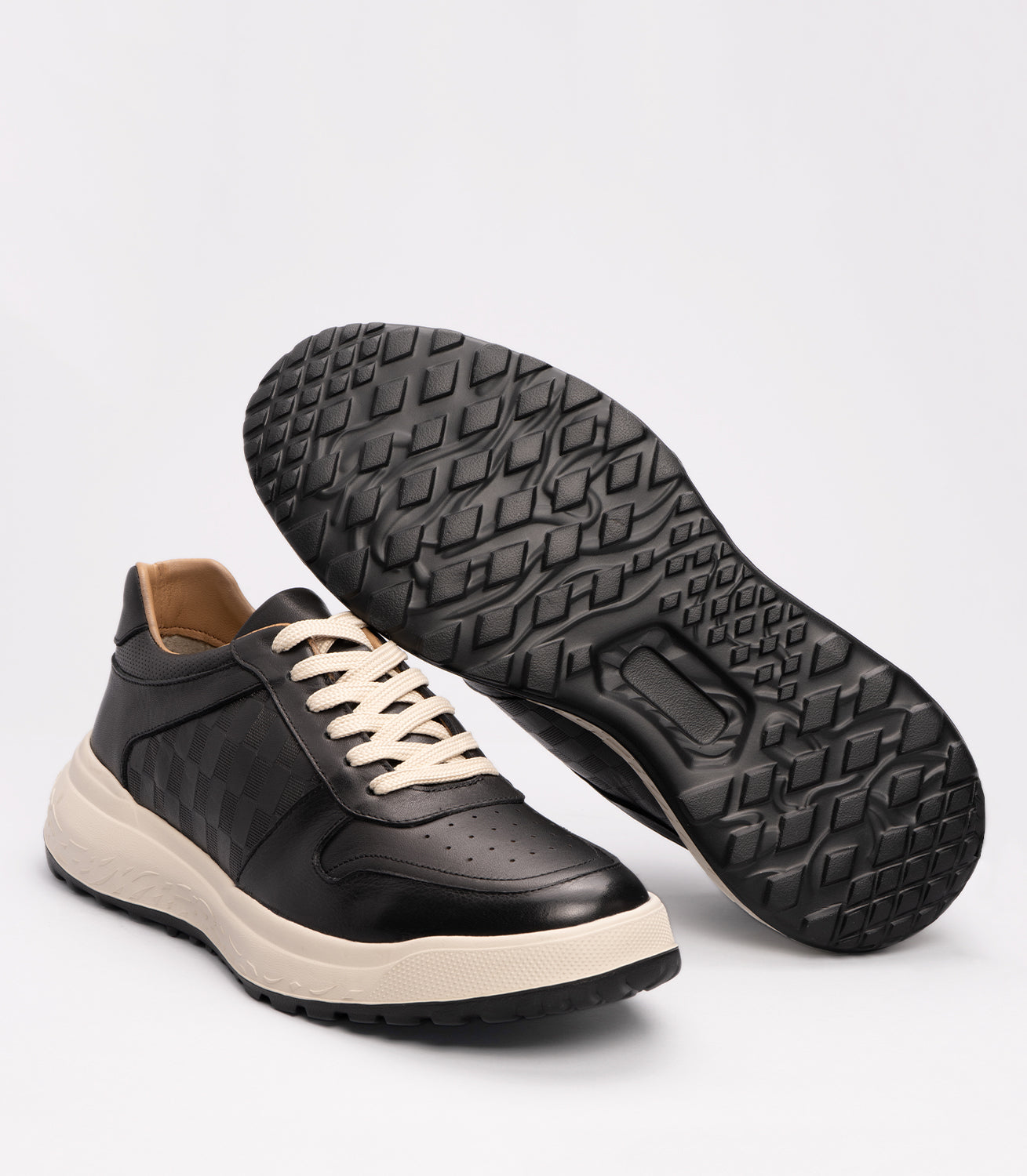 Erkek Desenli Deri Sneaker Ayakkabı Siyah