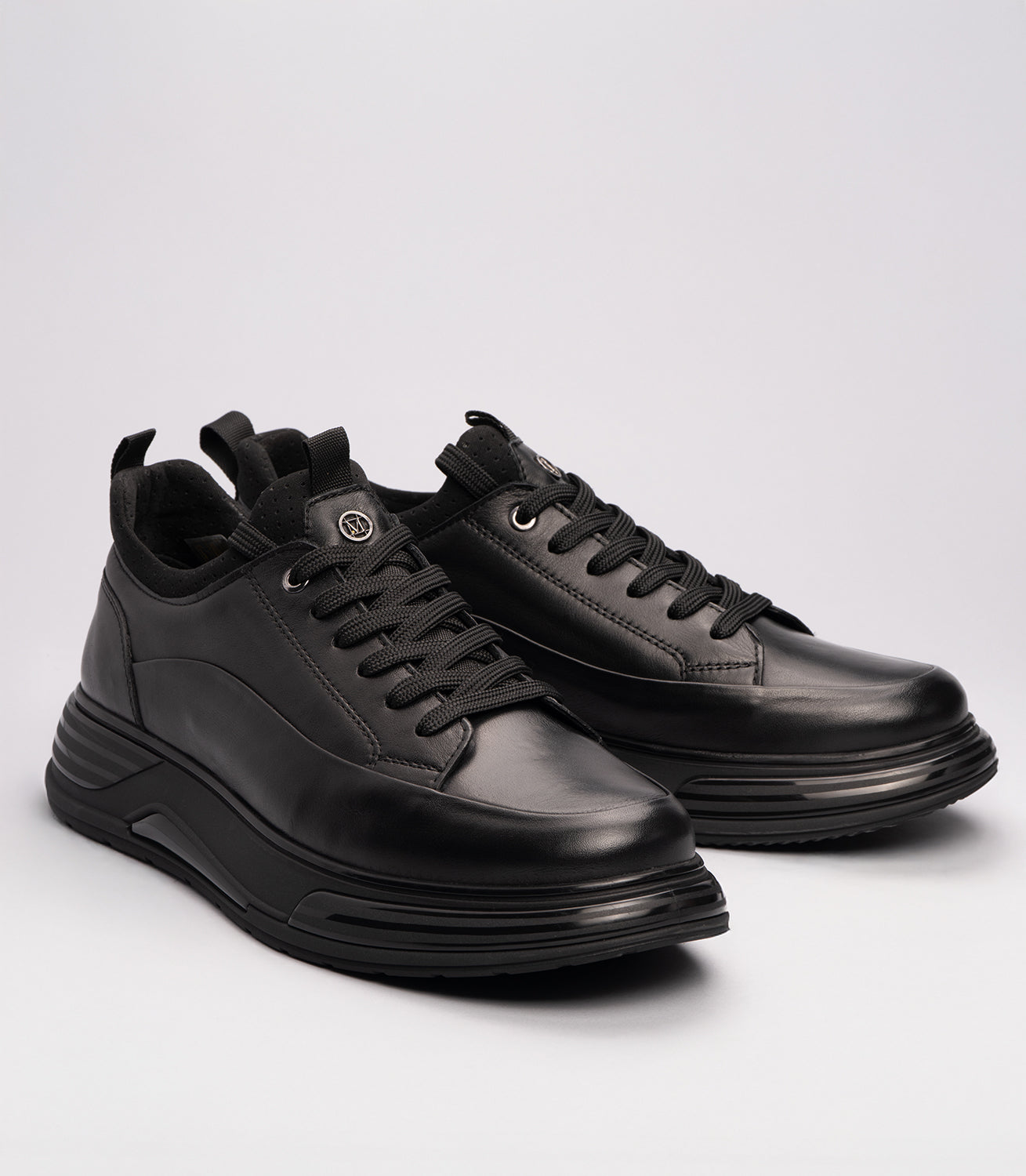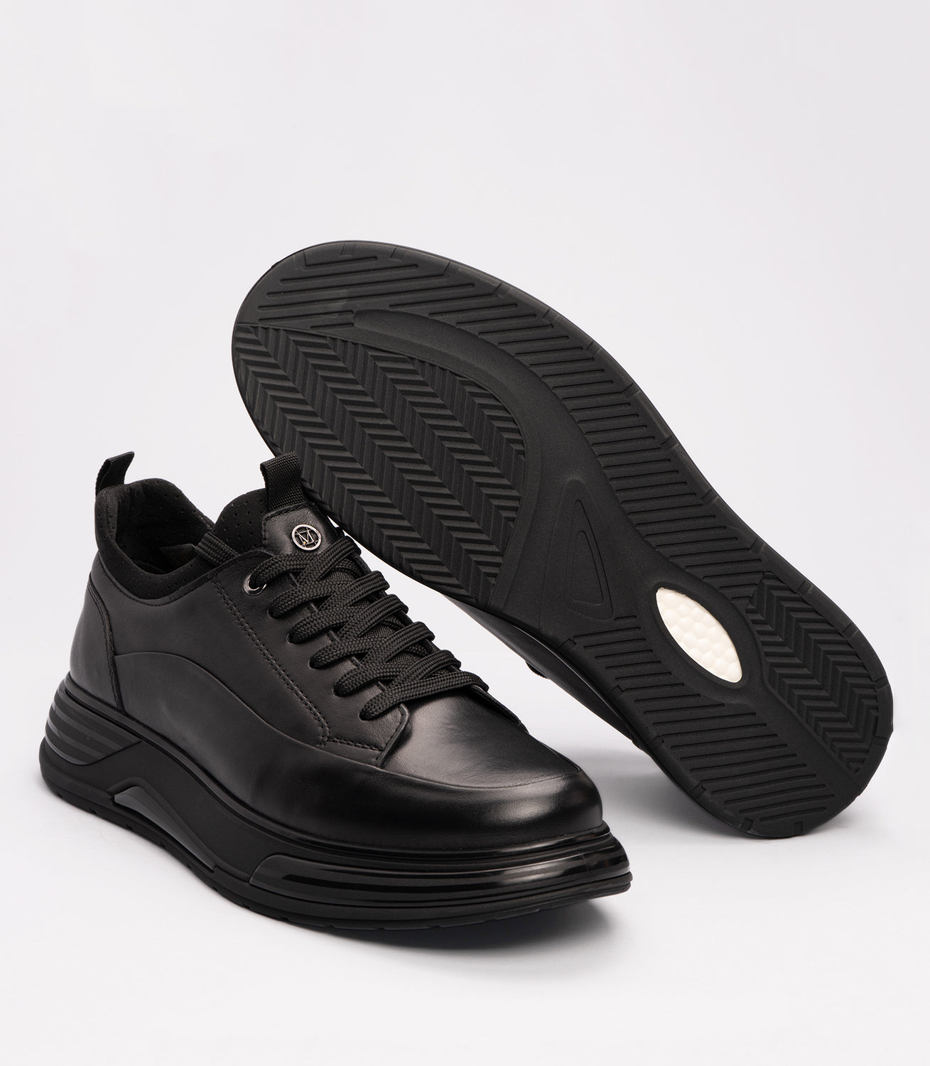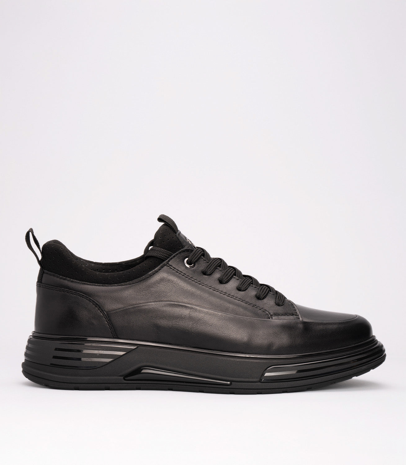Erkek Hakiki Deri Bağcıklı Sneaker Siyah