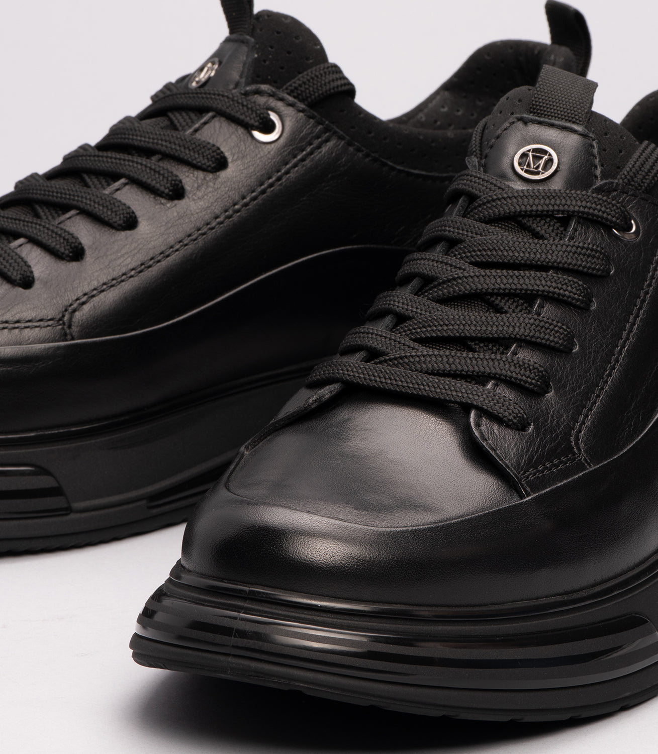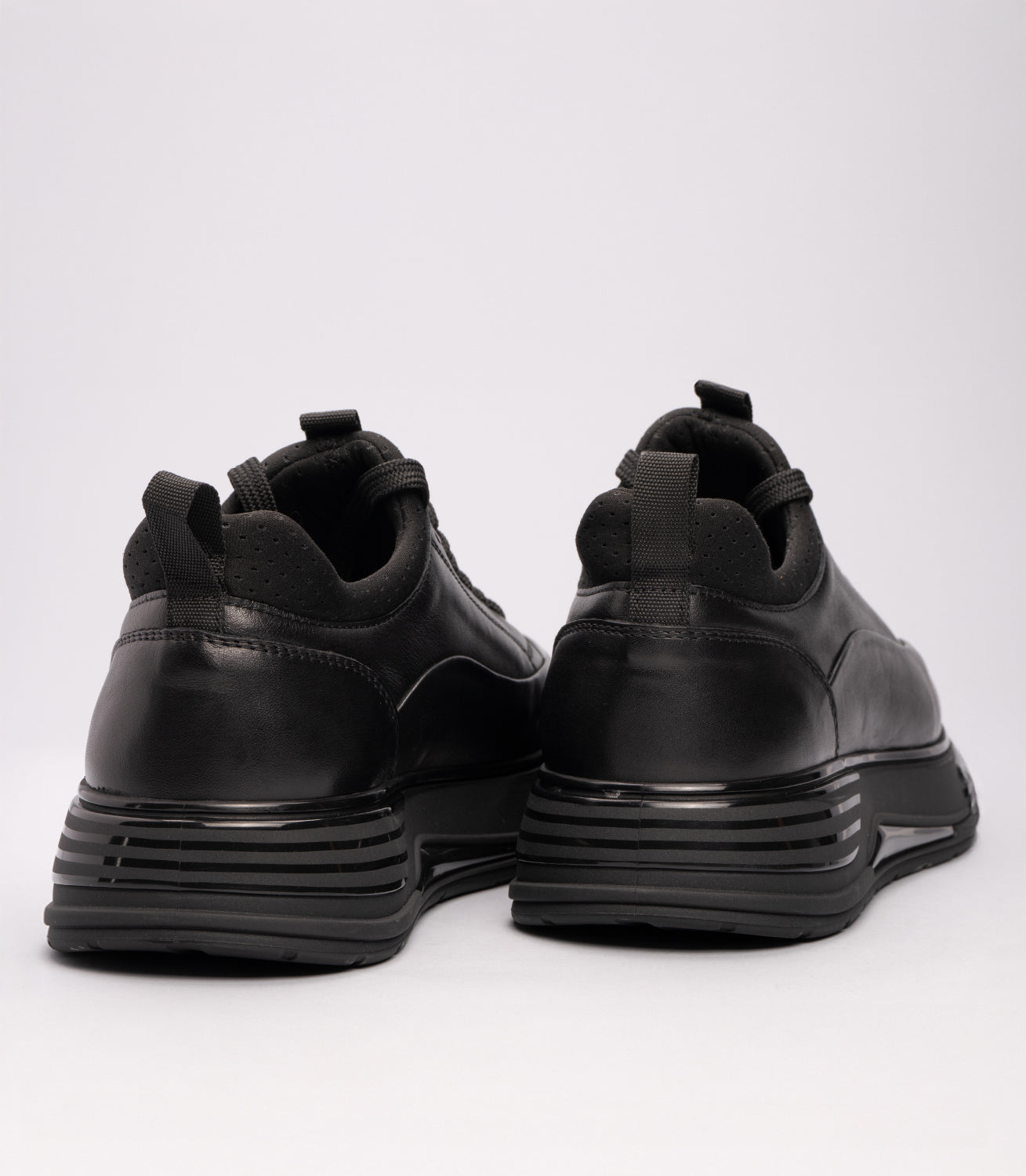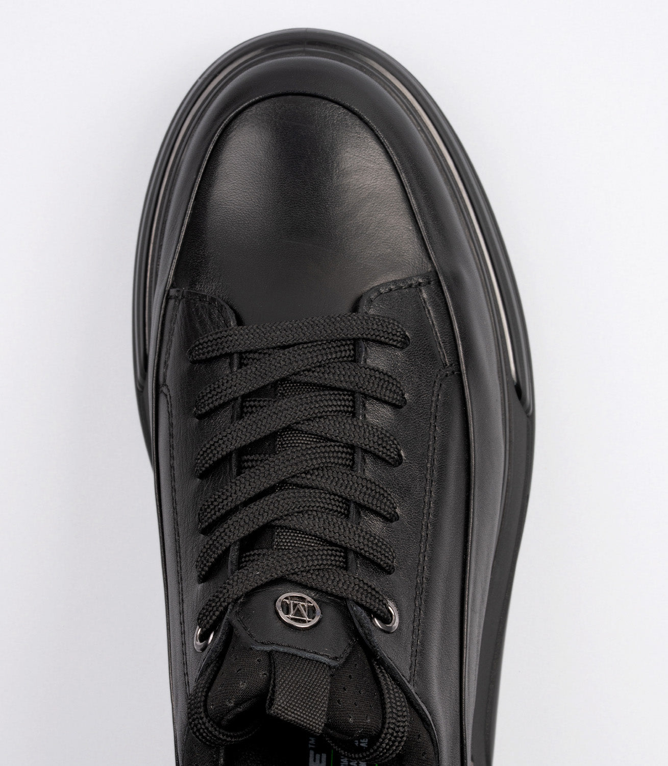 Erkek Hakiki Deri Bağcıklı Sneaker Siyah