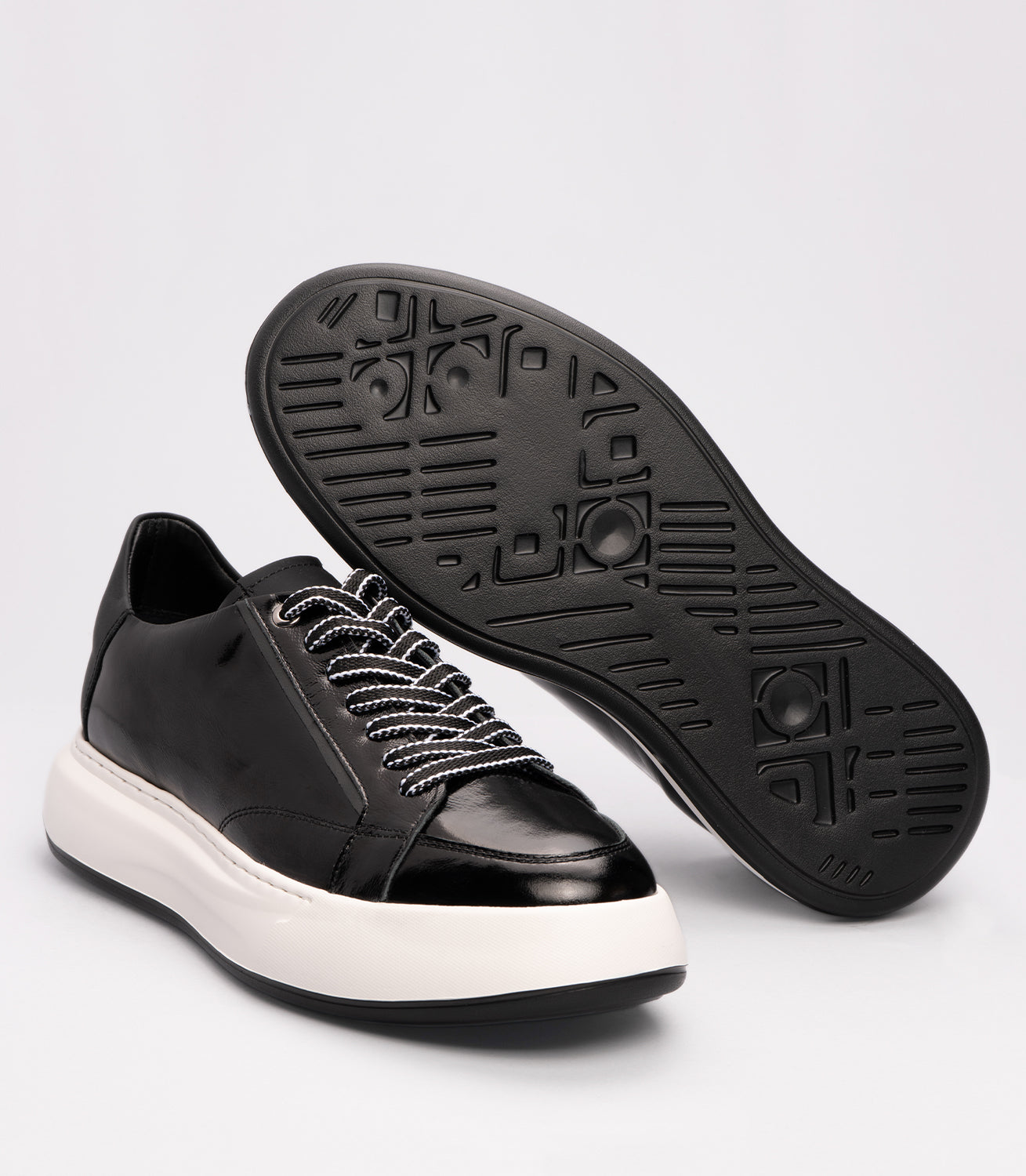 Erkek Hakiki Deri Casual Ayakkabı Siyah Rugan