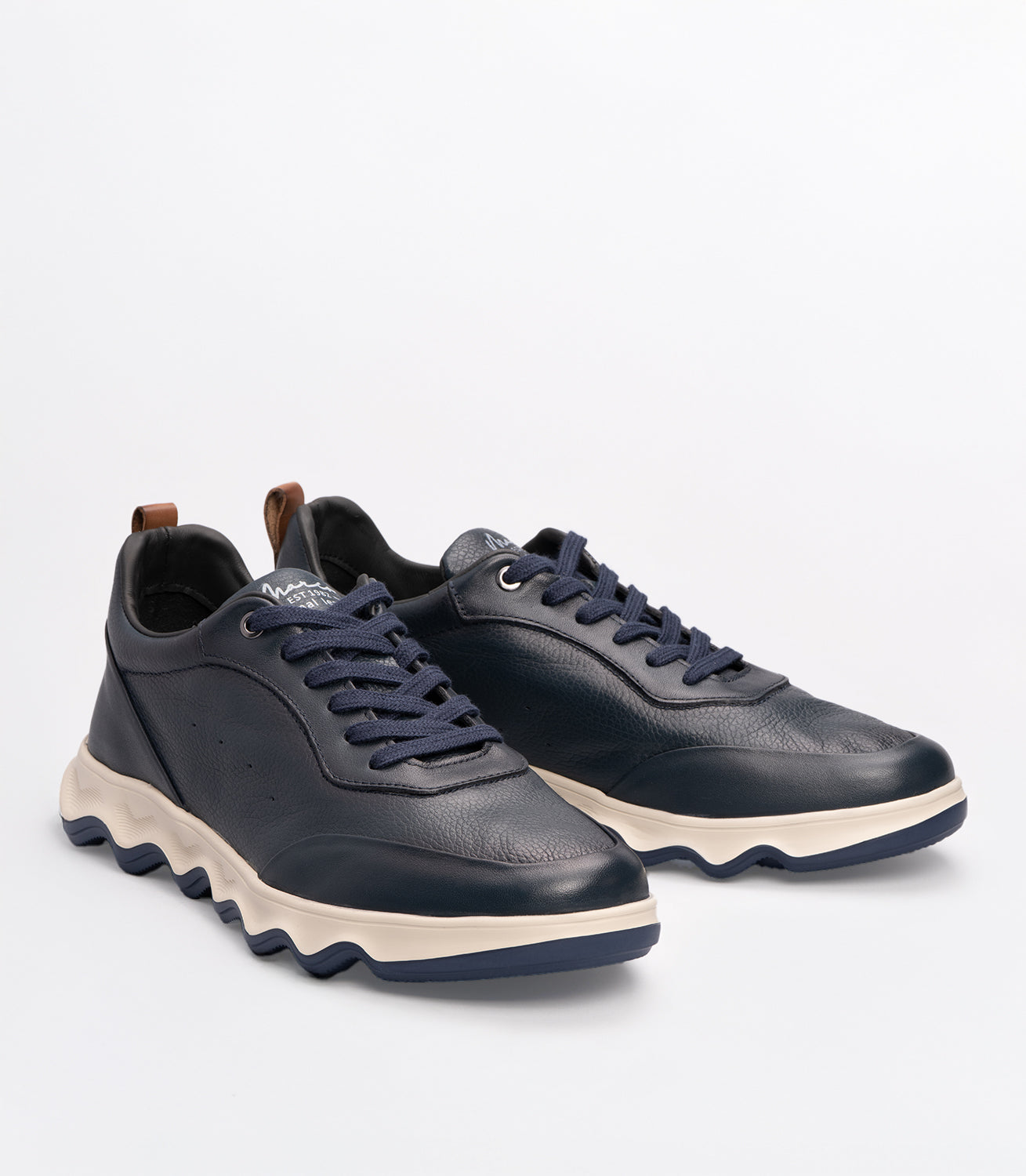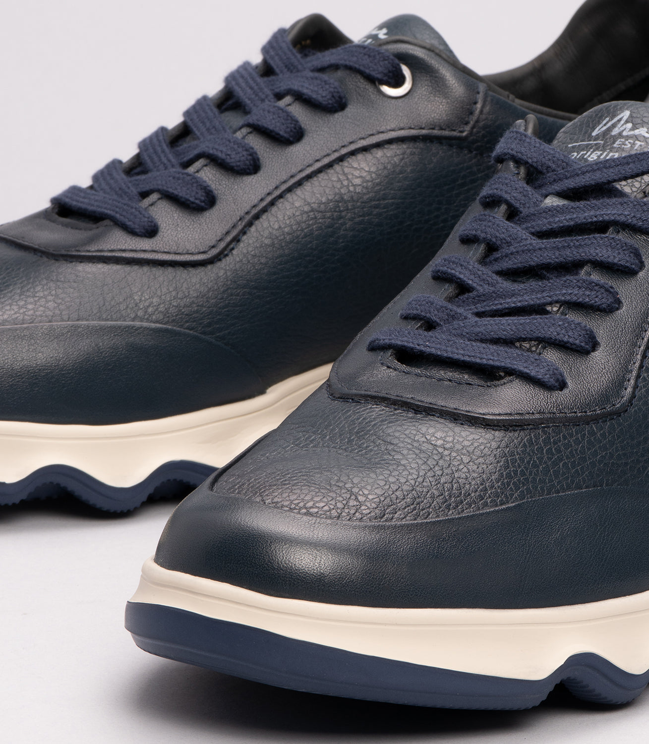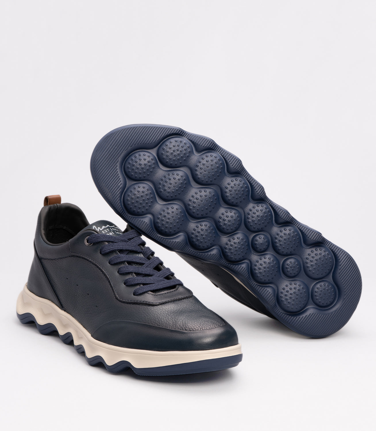 Erkek Hakiki Deri Hafif Taban Sneaker Lacivert