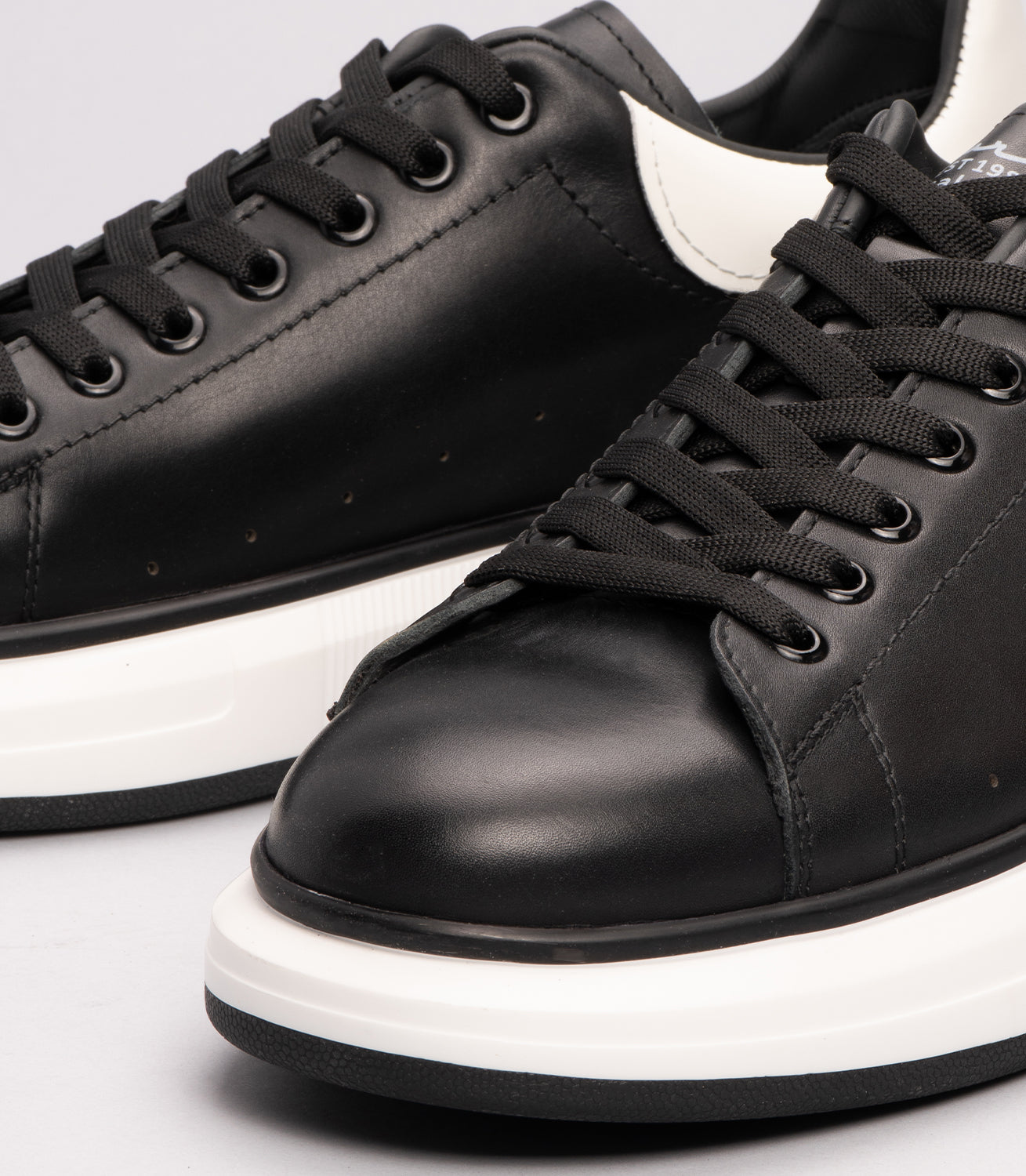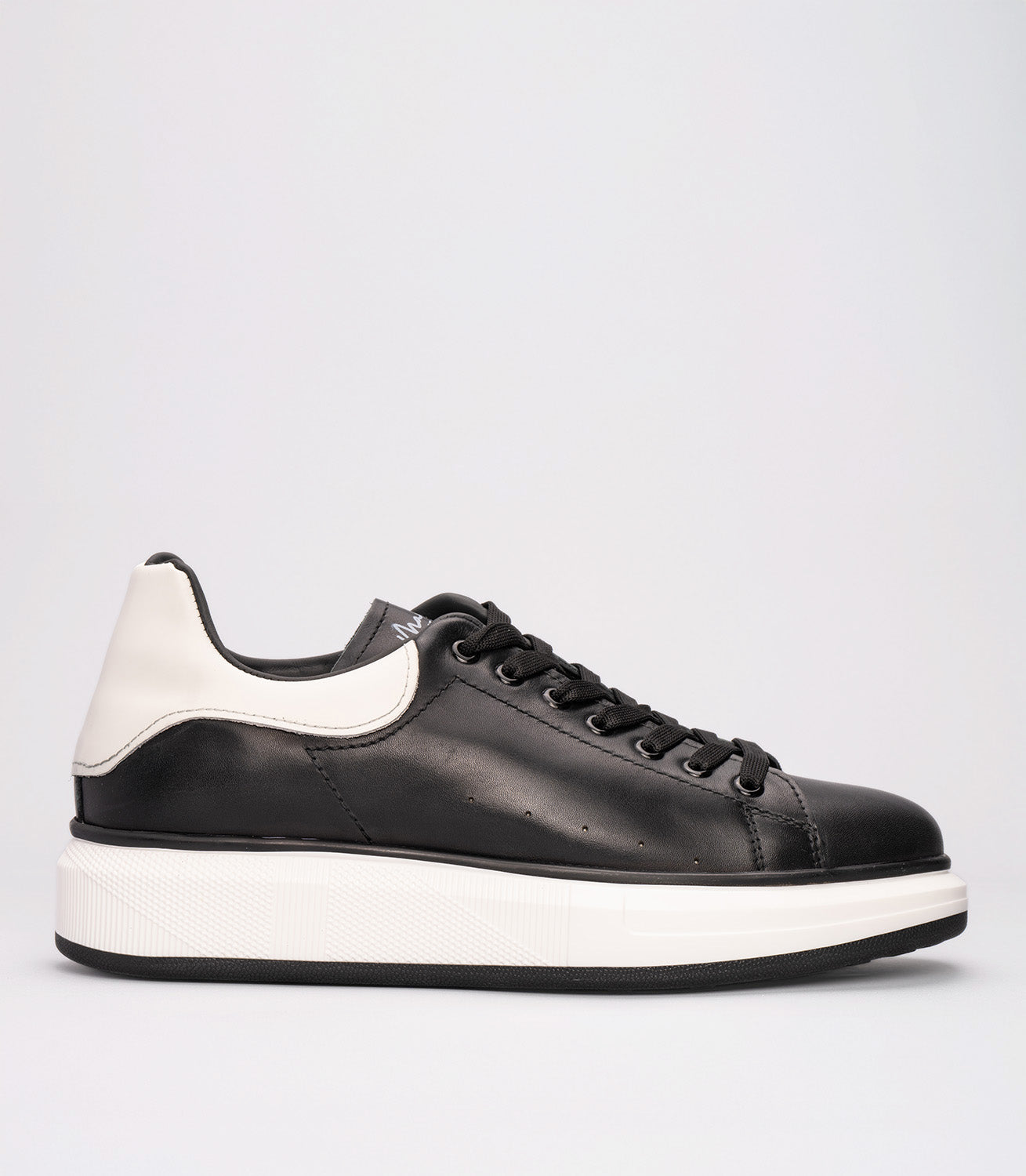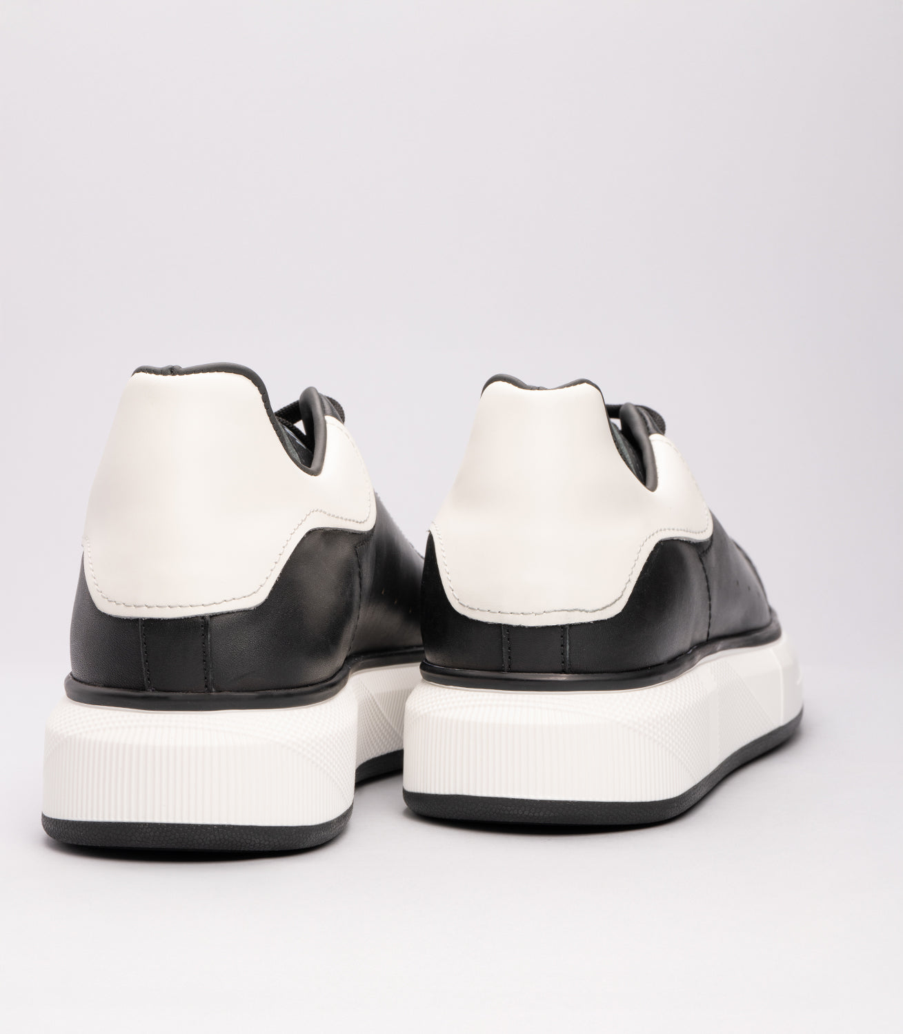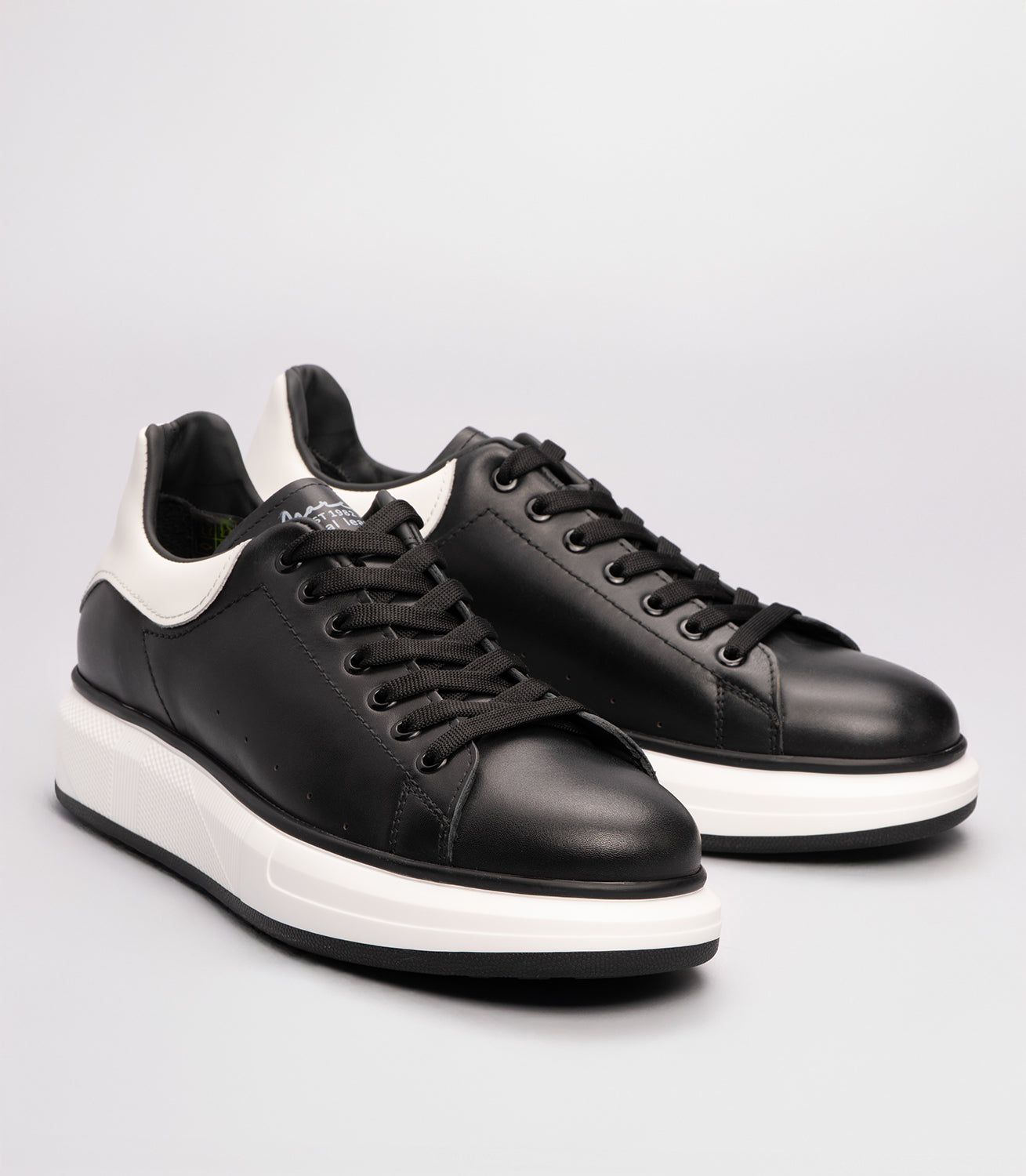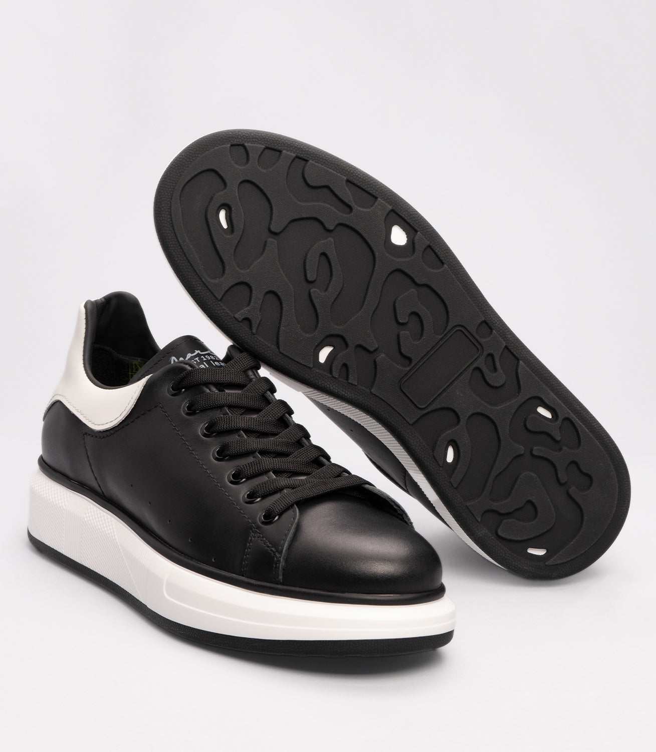 Erkek Kalın Taban Deri Casual Ayakkabı Siyah/ Beyaz