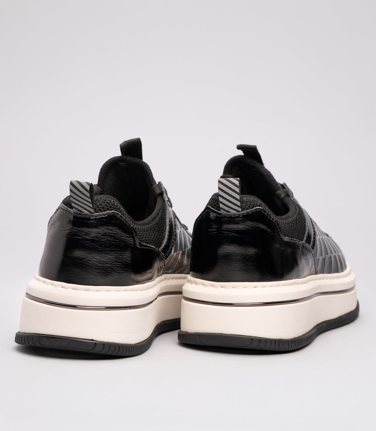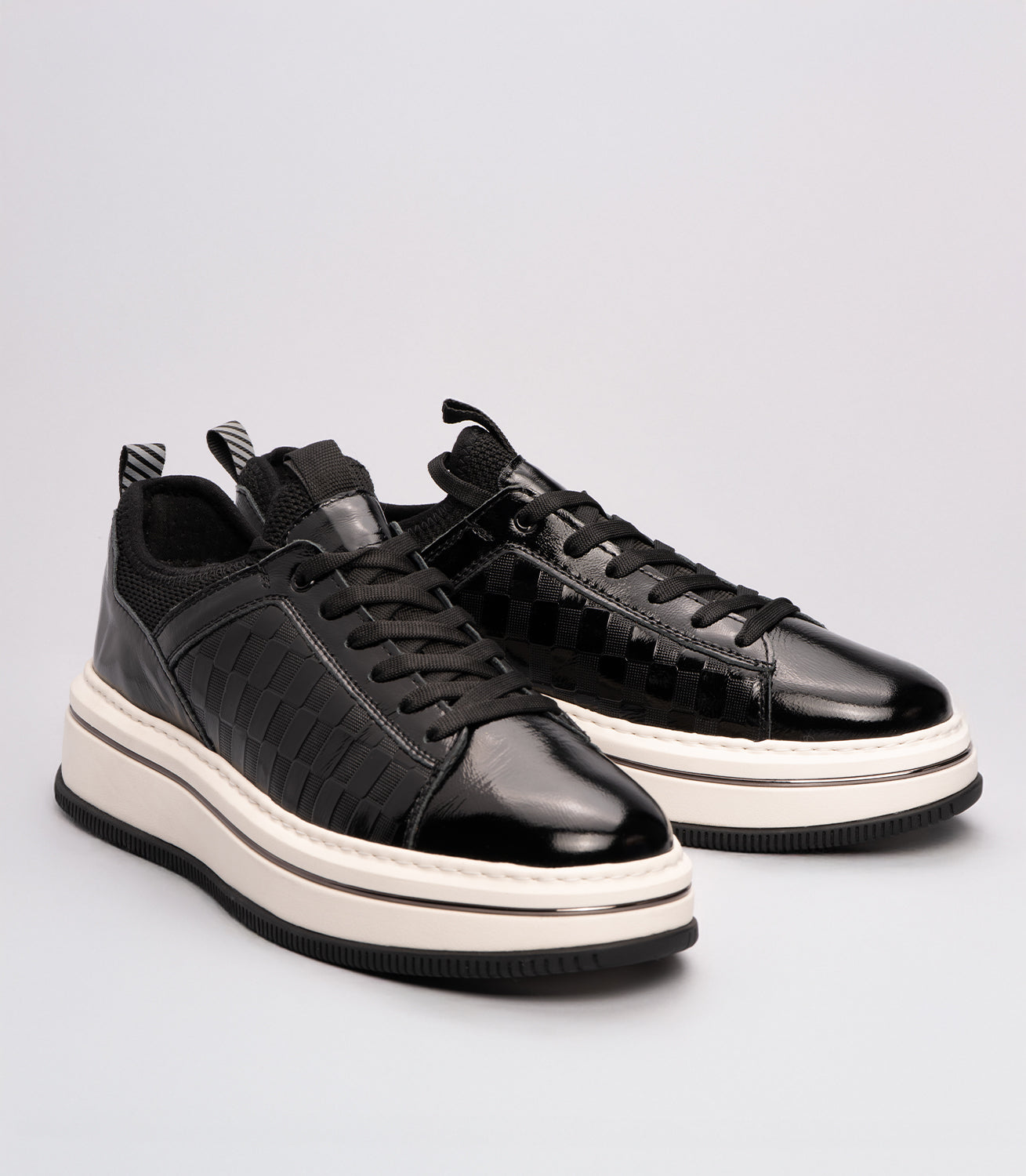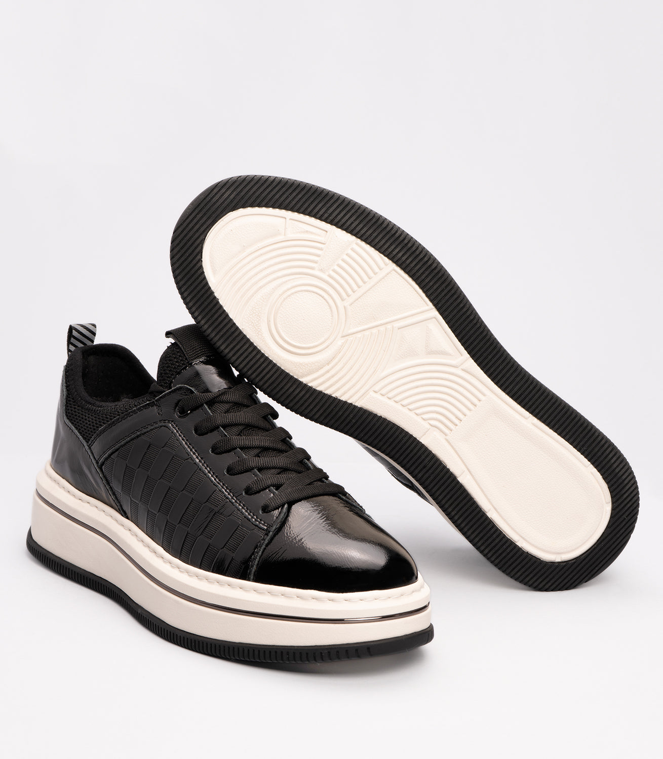 Erkek Örgü Detaylı Rugan Sneaker Ayakkabı Siyah