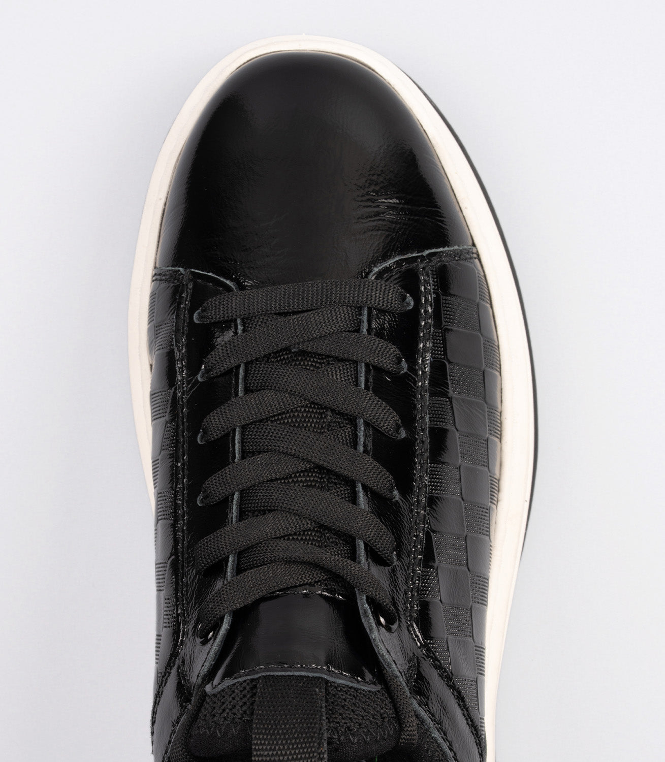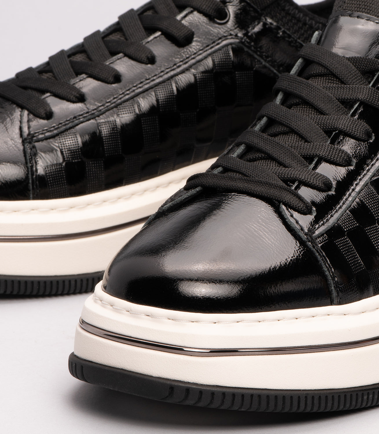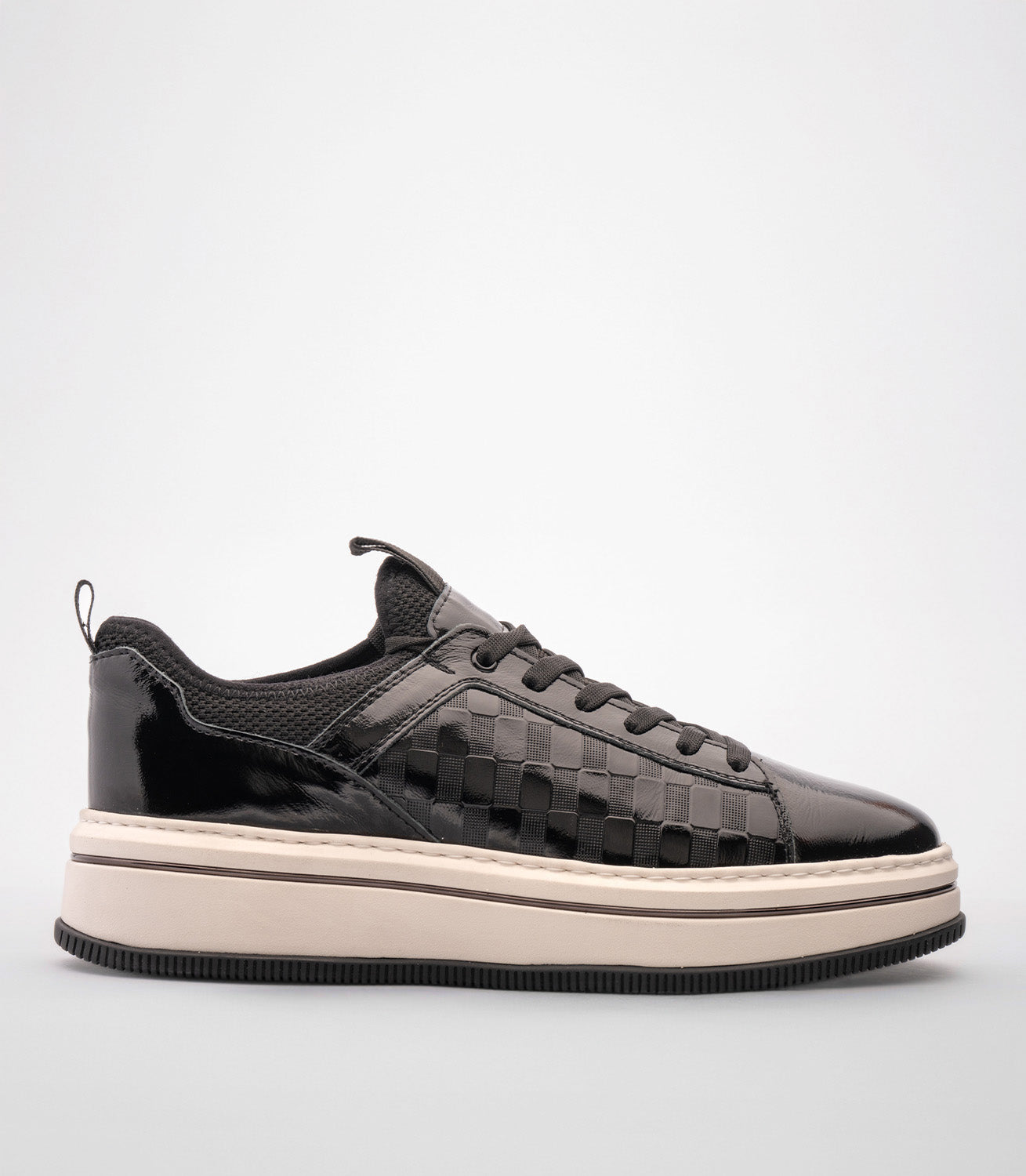 Erkek Örgü Detaylı Rugan Sneaker Ayakkabı Siyah
